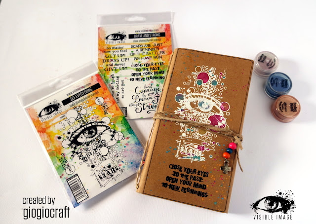 I must confess: I couldn't resist getting more Visible Image stamps during the infamous Black Friday: let's say it is a sort of celebration, because last year, same time, I got my first VI stamps and now I am on their design team! I used this magnicent 'See Everything' stamp set on kraft paper on a wrapped journal cover and I love the effect I got: