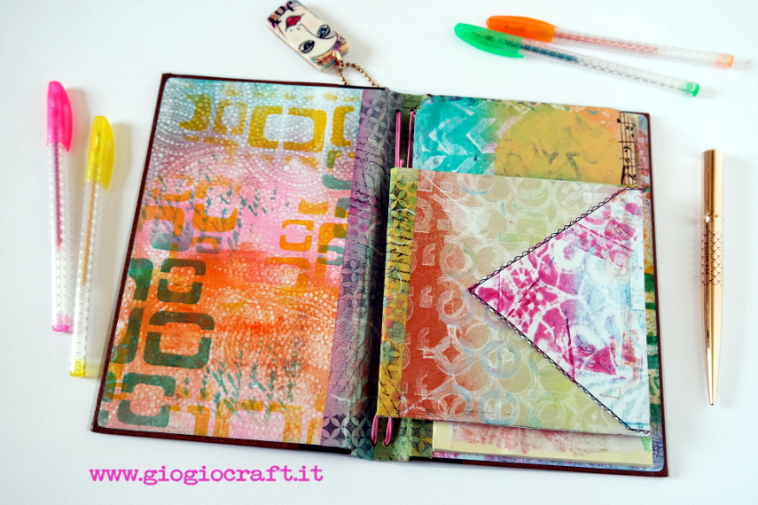 Front and back are covered with gel prints from two previous projects (you can guess how many leftovers I have...)